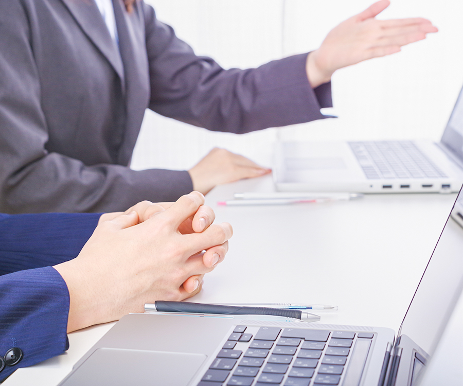 初回面談60分無料。お悩みやご要望を丁寧にヒアリング。貴社へのご訪問または当事務所へご来所頂きます。